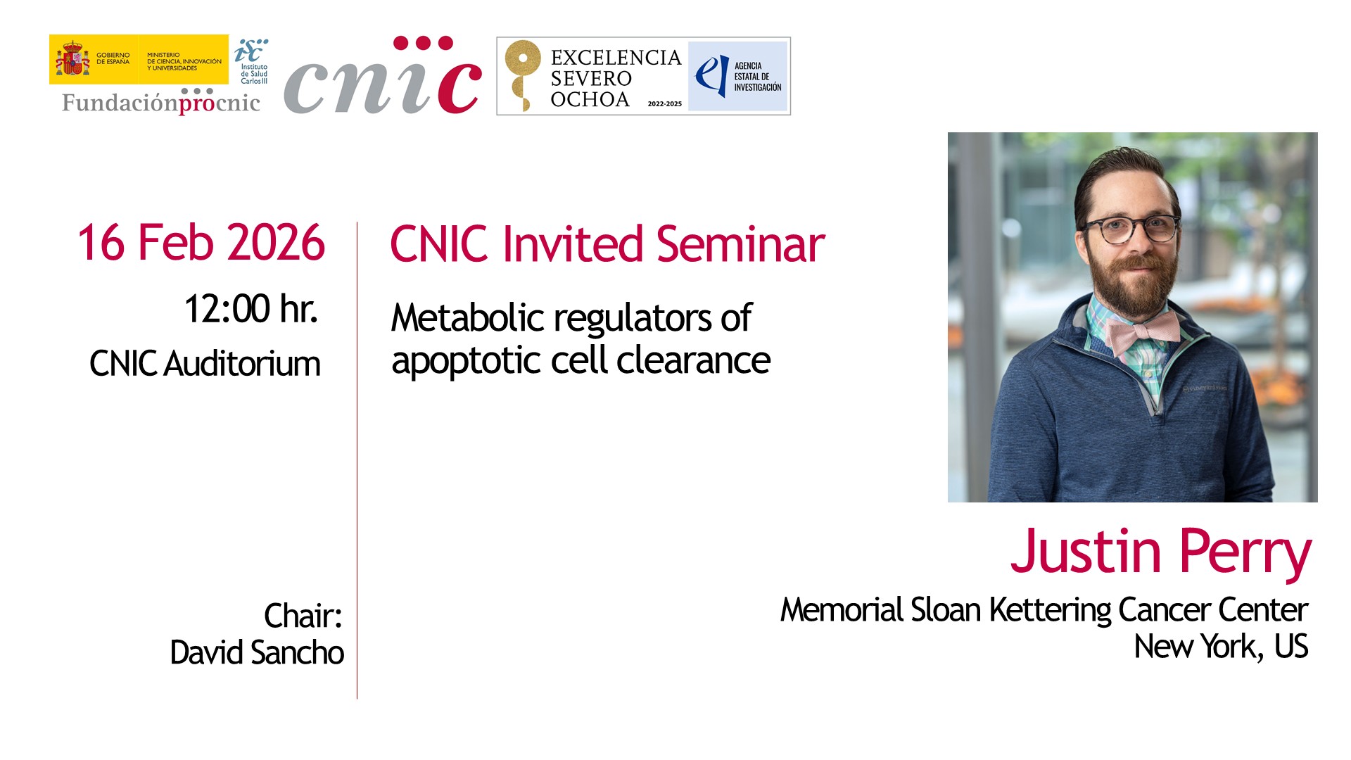 Speaker Justin Perry, Memorial Sloan Kettering Cancer Center, New York, USChair David Sancho
